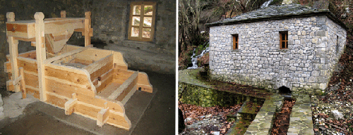 Υπάρχει νερόμυλος με νεροτριβή και μαντάνι κάτω από το Δημοτικό Διαμέρισμα σε απόσταση περίπου 1χλμ. από το κέντρο του χωριού. Κατασκευάστηκε όταν ήρθαν εδώ και οι κάτοικοι από τους προαναφερθείσες οικισμούς. Σήμερα γίνεται επισκευή του μύλου, των μαντανιών και της νεροτριβής από την αρχαιολογία.